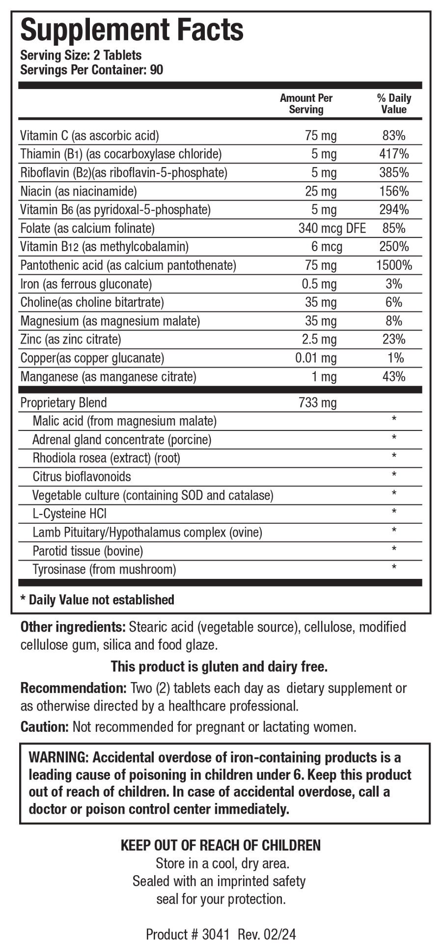 ADB5-Plus™ is a specific blend of vitamins, minerals, amino acids and other important nutritional synergists to support healthy adrenal function. This product includes glandulars in the form of adrenal gland concentrate (porcine), lamb pituitary/hypothalamus complex (ovine), parotid tissue (bovine). These glandular components serve to provide raw materials and vital chemical messengers which aide in the functional support of the adrenals.