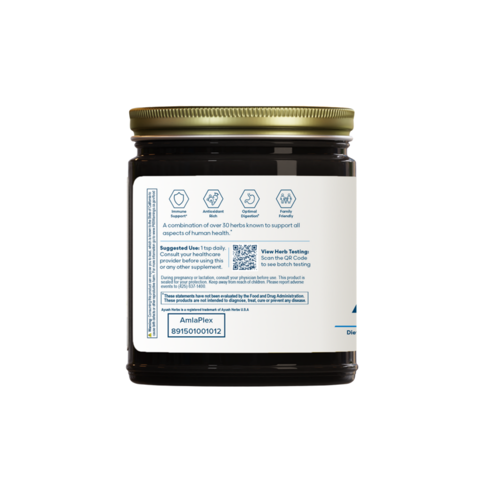 Amla Plex is a blend of 35 herbs; however, its chief ingredient Amla (Phyllanthus emblica) is regarded as one of the potent sources of vitamin C found in nature and has been studied for its ability to improve energy levels, support healthy blood glucose levels, support immune function, and promote healthy oral and digestive microflora.*