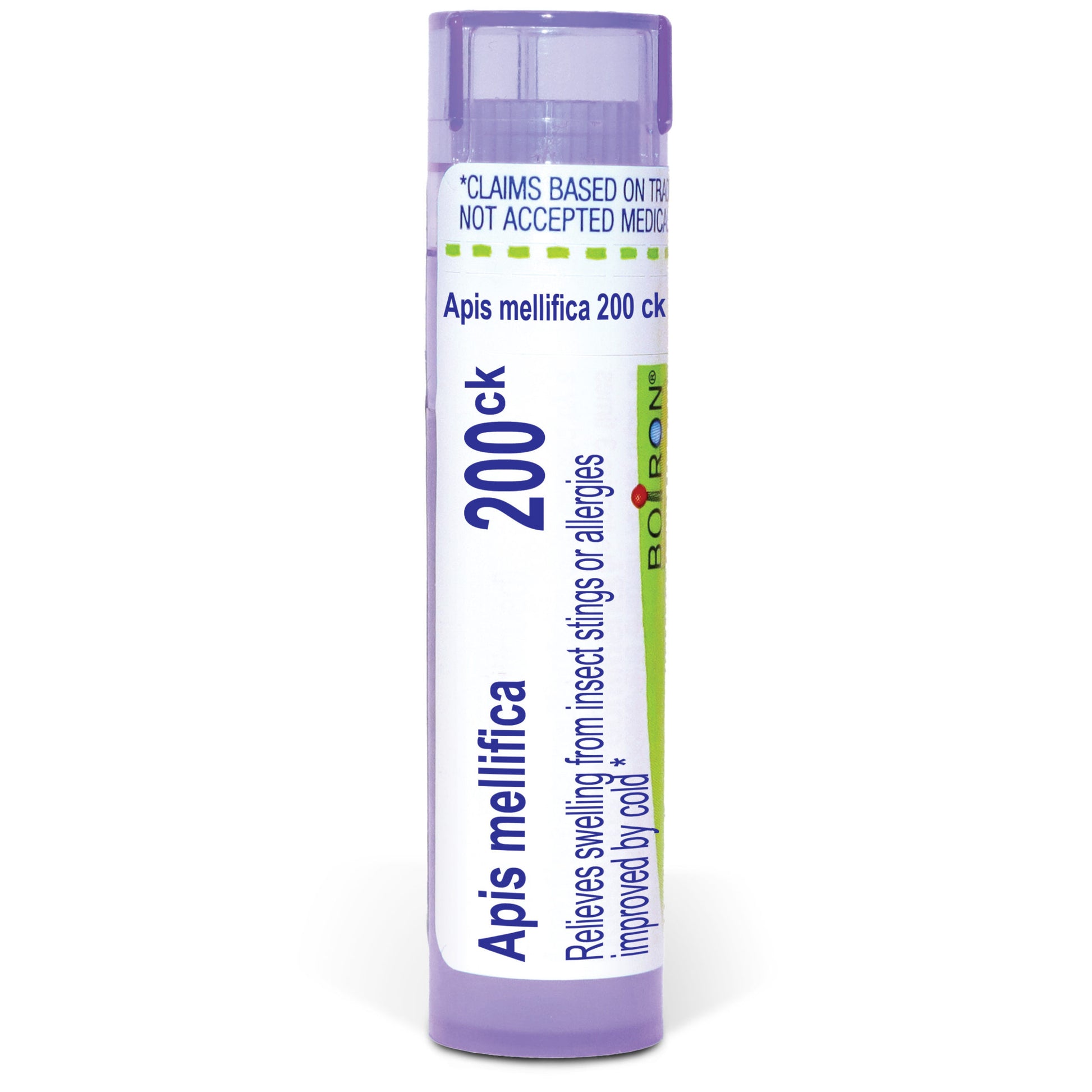 Apis Mellifica is a homeopathic medicine that relieves swelling from insect stings or allergies improved by cold.* The pellets melt in your mouth and can be taken on the go, no food or water needed.
