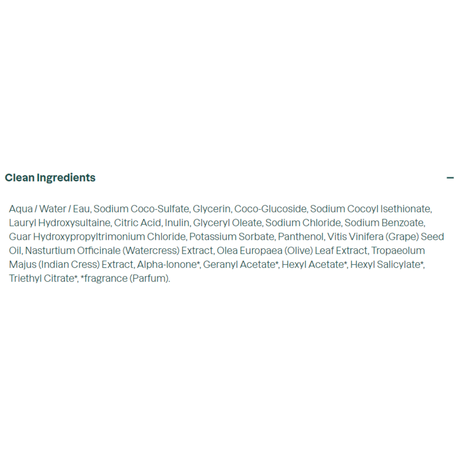 Our vegan Nourishing shampoo, formulated with 97.9% naturally sourced ingredients*, repairs and strengthens dry and damaged hair. Its formula contains grapeseed oil to moisturize hair’s surface and olive leaves extract to soothe the scalp. EWG VERIFIED™ and dermatologically tested, this new hair care essential is enriched with watercress and Indian cress extract to strengthen and revitalize hair. Let it infuse your hair with a gentle pear fragrance with invigorating nectarine and ginger notes. Get even more dazzling results with our Nourishing conditioner!
