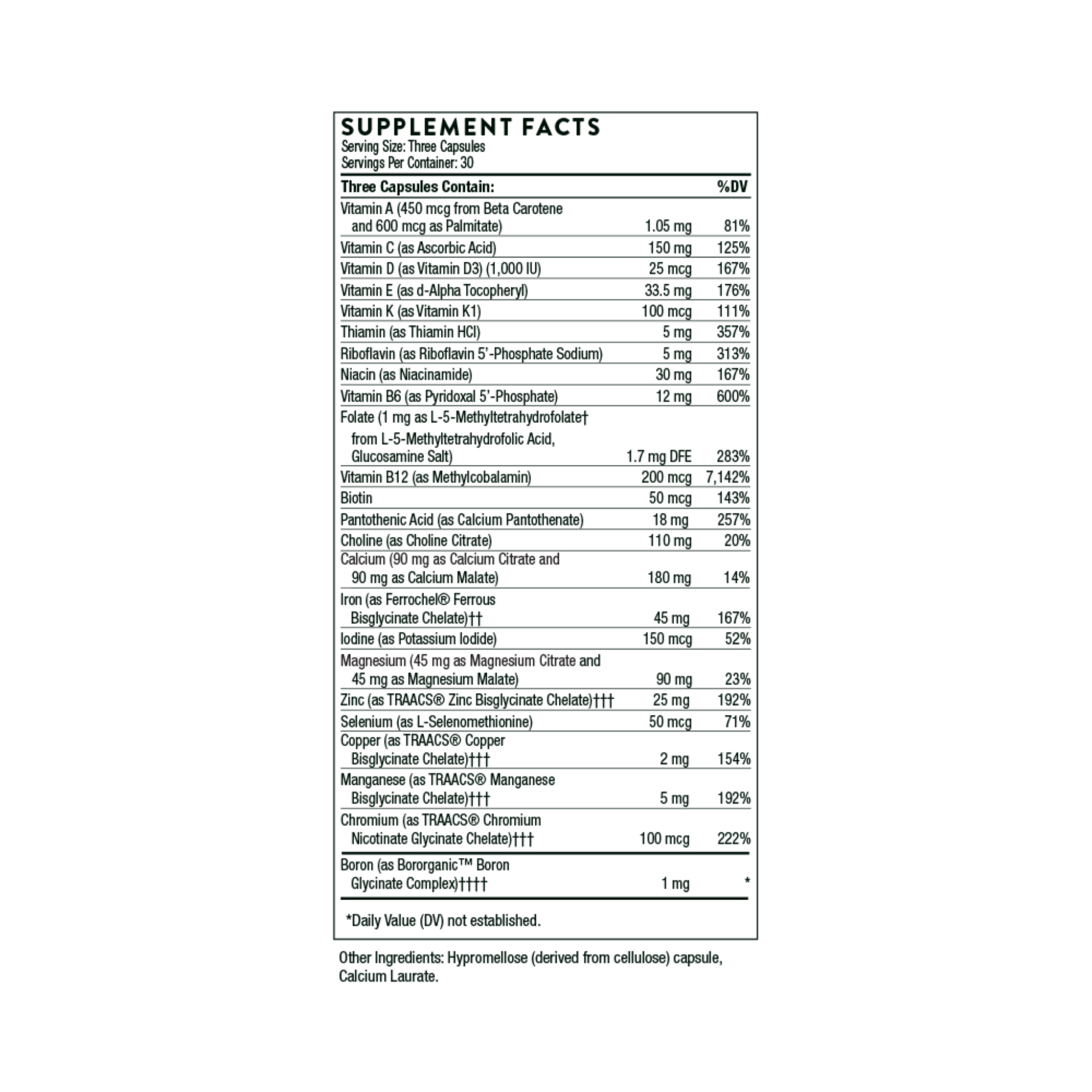 A well-researched multi- formulated to nourish mom and support baby’s development, from pre-conception through nursing.* It’s made without the additives and coatings found in mainstream prenatal supplements.