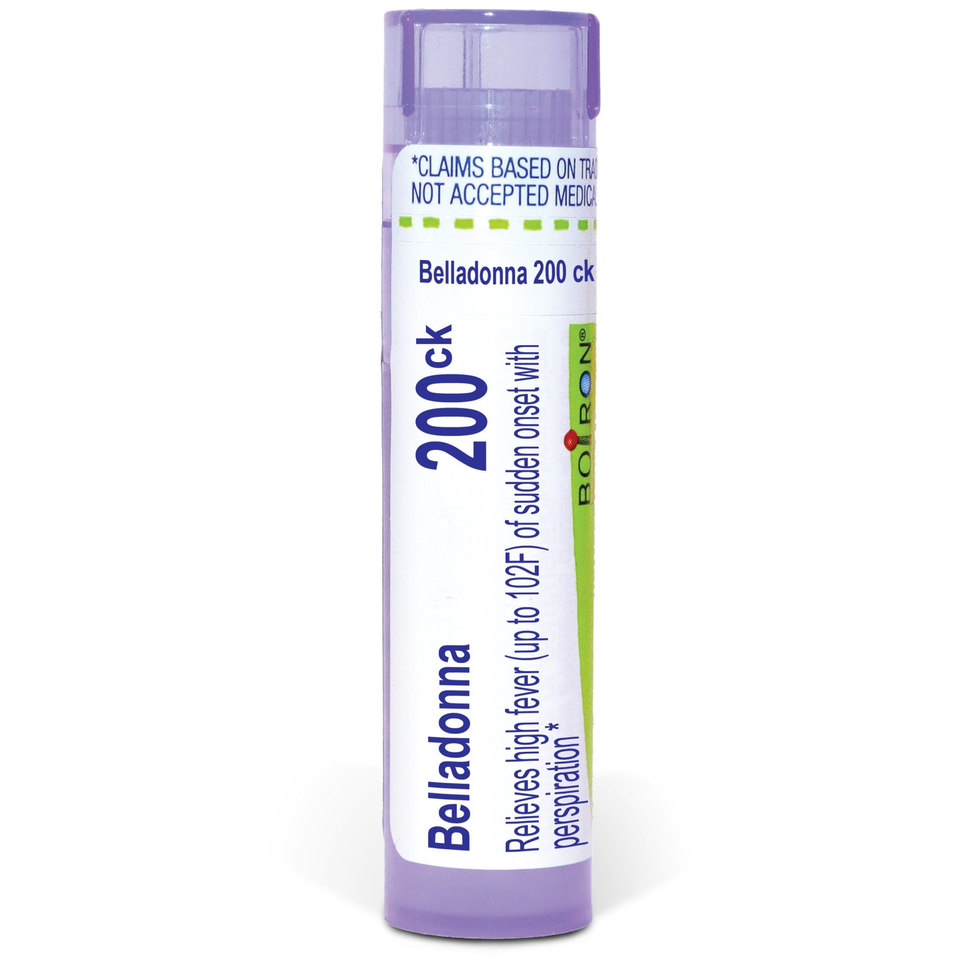 Belladonna is a homeopathic medicine that relieves high fever (up to 102°F) of sudden onset with perspiration.* The pellets melt in your mouth and can be taken on the go, no food or water needed.