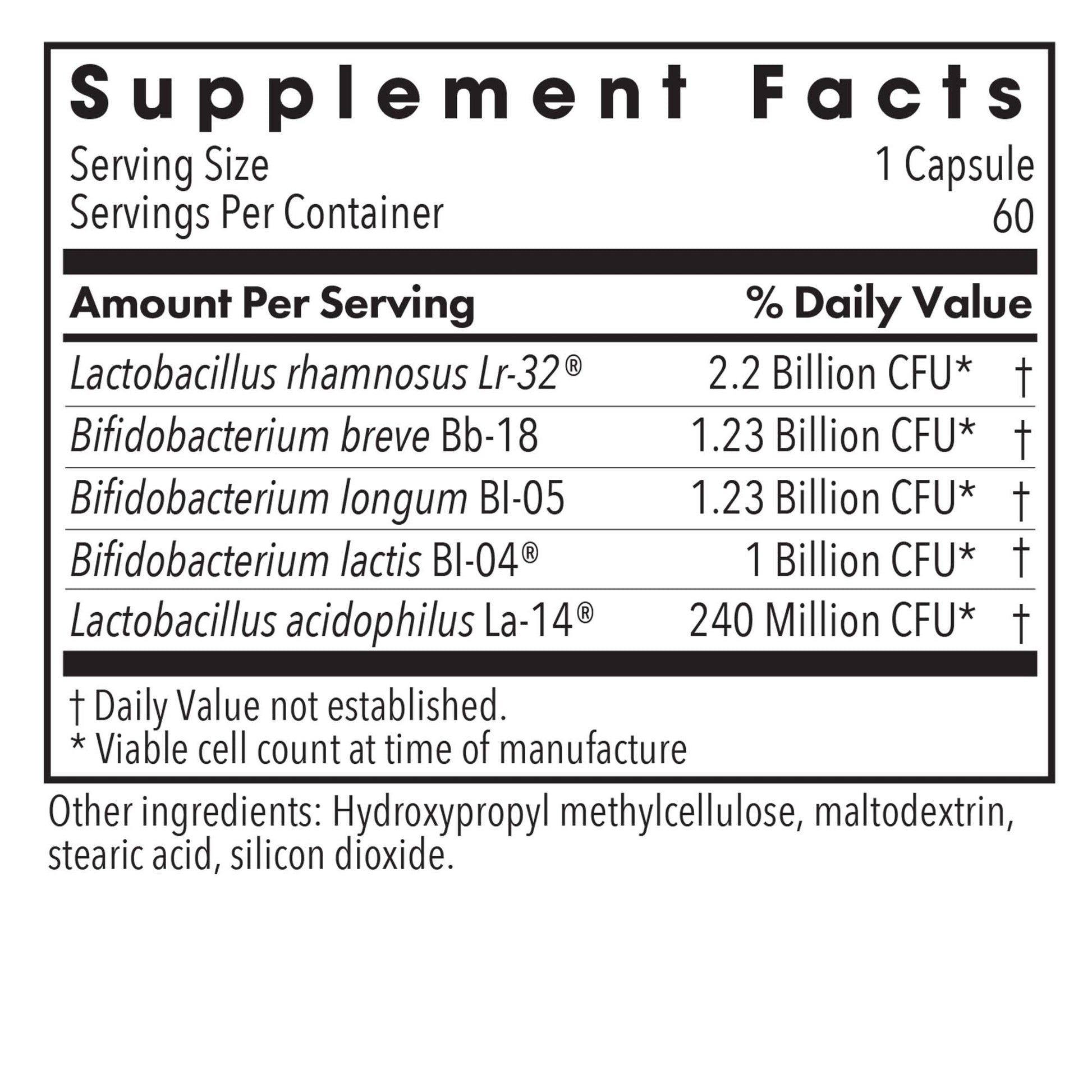 The bifidobacteria group are the most common probiotics found in the large intestine. They are comparatively delicate however, and their numbers can easily be depleted. Now with Bifidobacterium lactis! Lyophilized (freeze-dried). Non-Dairy and Gluten-free.
