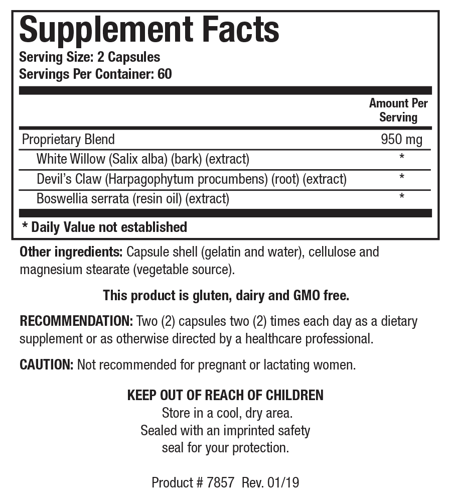 Bio-Allay® supplies a proprietary blend of standardized extracts of white willow, devil's claw, and Boswellia serrata, which provide a natural means to support the downregulation of pro-inflammatory compounds.*