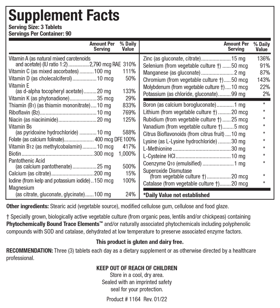 Bio-Multi Plus™ Fe & Cu Free is a versatile, balanced multiple vitamin and mineral supplement, that's free of both iron and copper.
