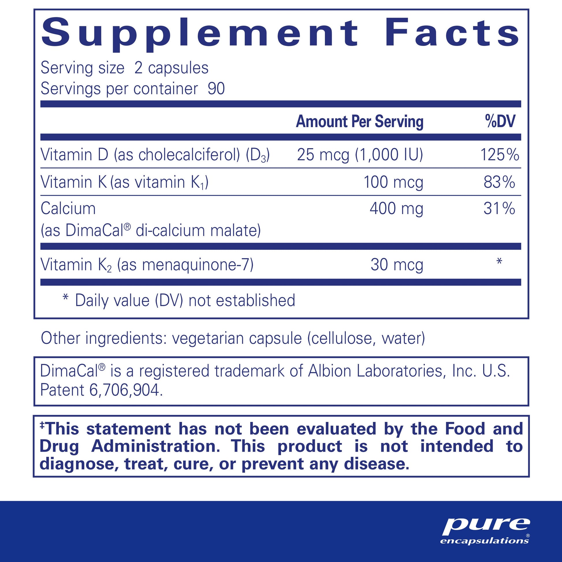 High elemental calcium per capsule with vitamins K And D; Supports bone and cardiovascular health; May reduce the risk of osteoporosis**‡
