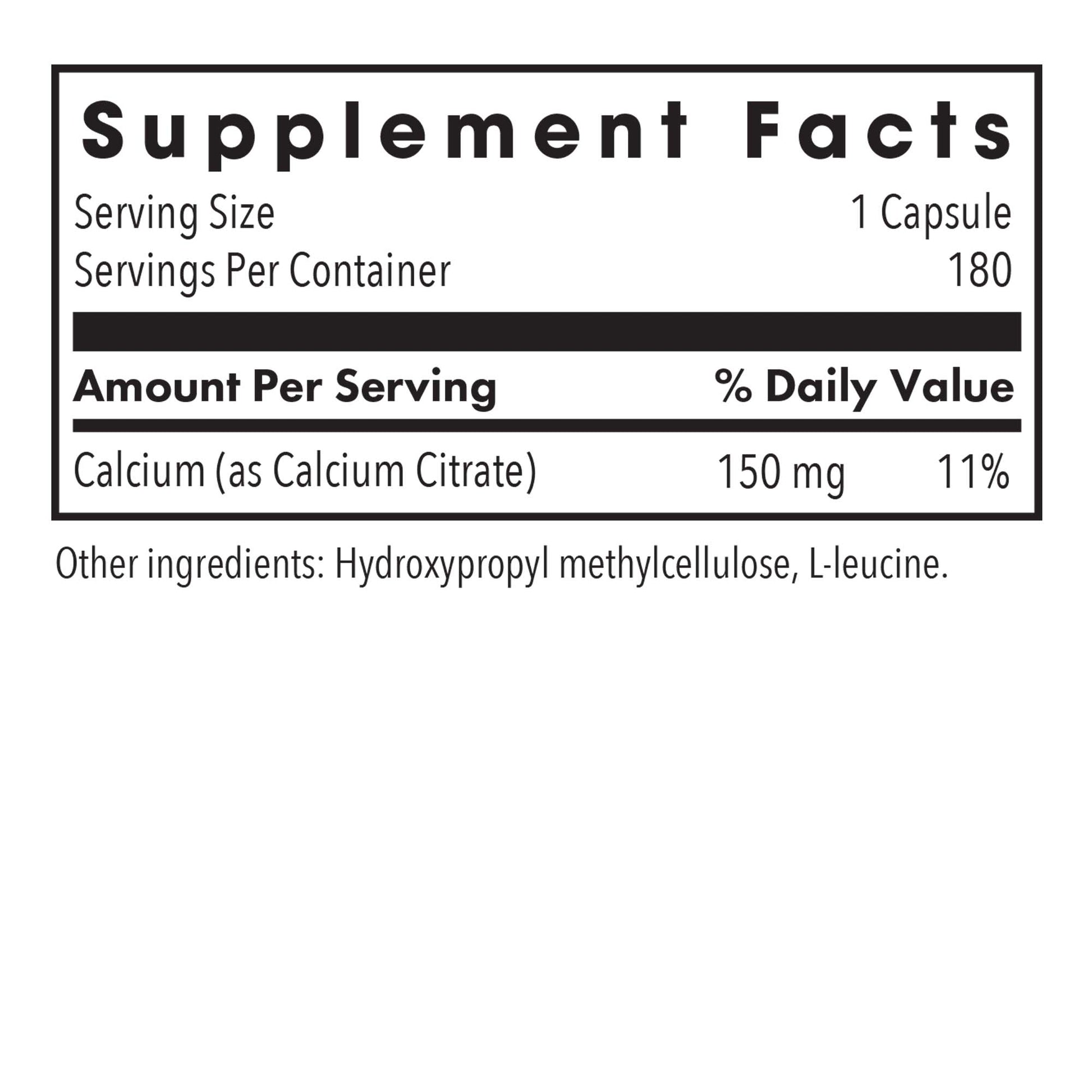 Calcium is an important macromineral. Calcium in the citrate form is well absorbed.* Each capsule contains 150 mg of calcium.