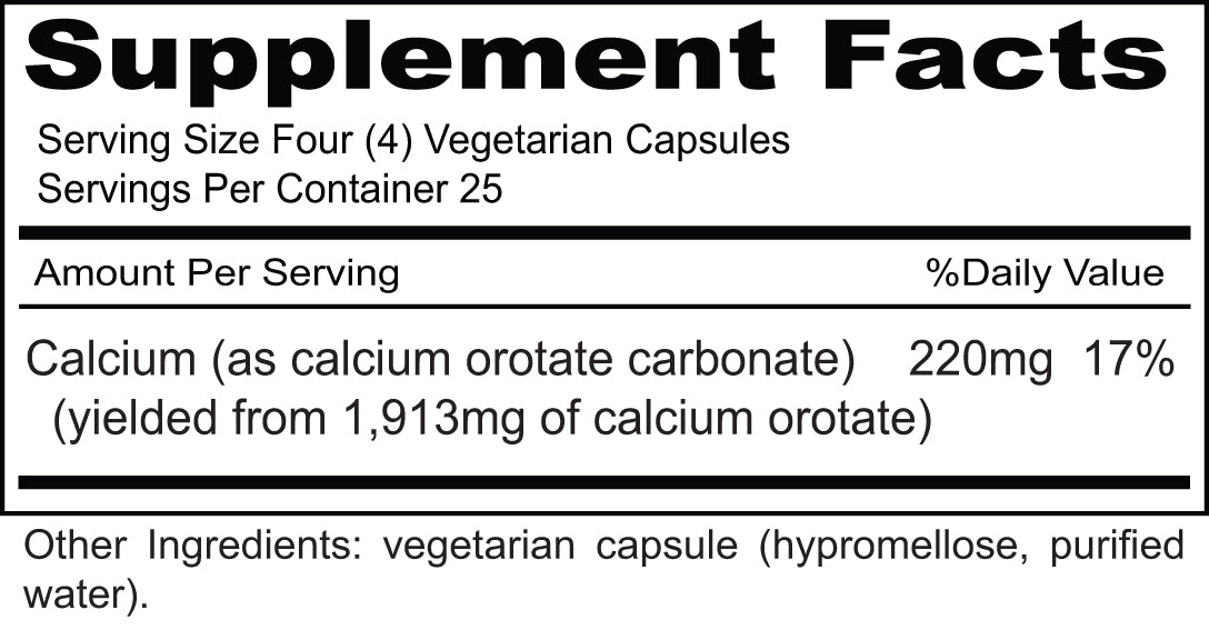 Calcium is essential to the body for healthy musculoskeletal, cardiovascular, and the nervous system. Although there are several bio available forms of calcium, natural orotic acid is actually produced by healthy intestinal flora.*