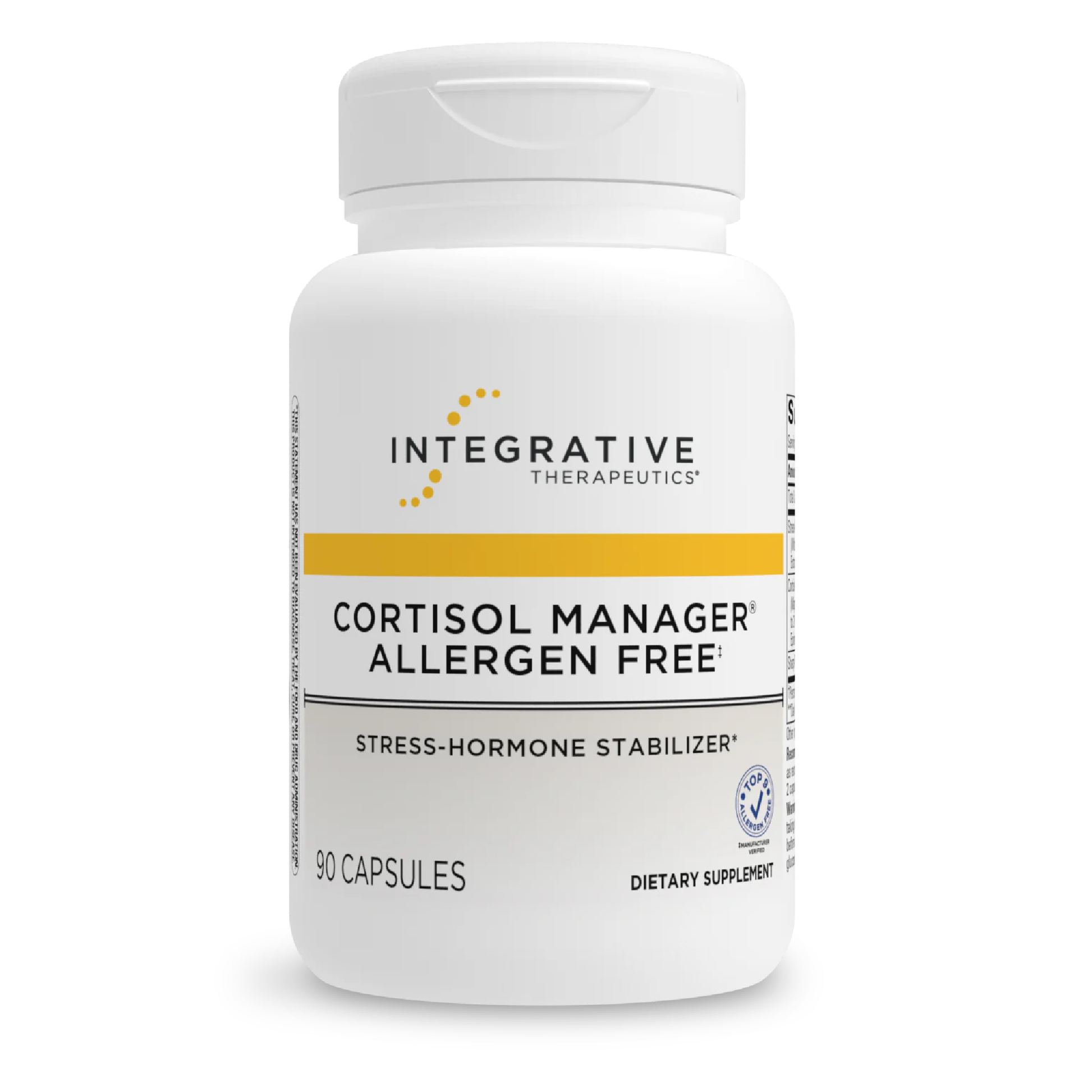 The ingredients in Cortisol Manager Allergen Free support healthy cortisol levels.* Cortisol is one of the most important hormones involved in the adaptation process. By supporting balanced cortisol and a healthy stress response, Cortisol Manager Allergen Free also promotes relaxation to support restful sleep.*