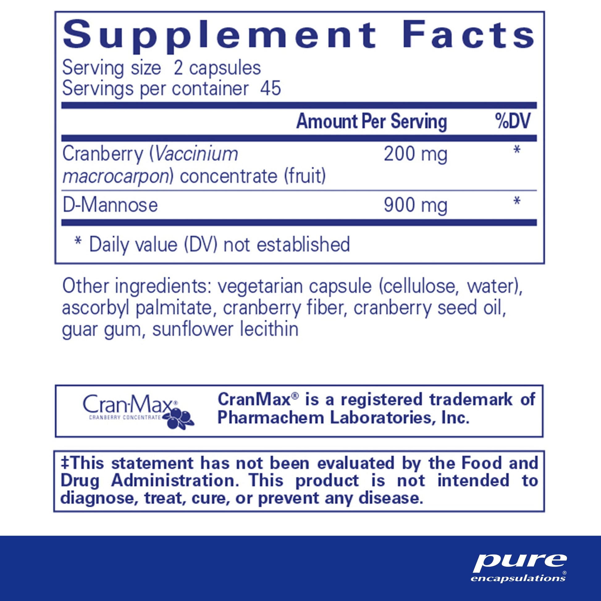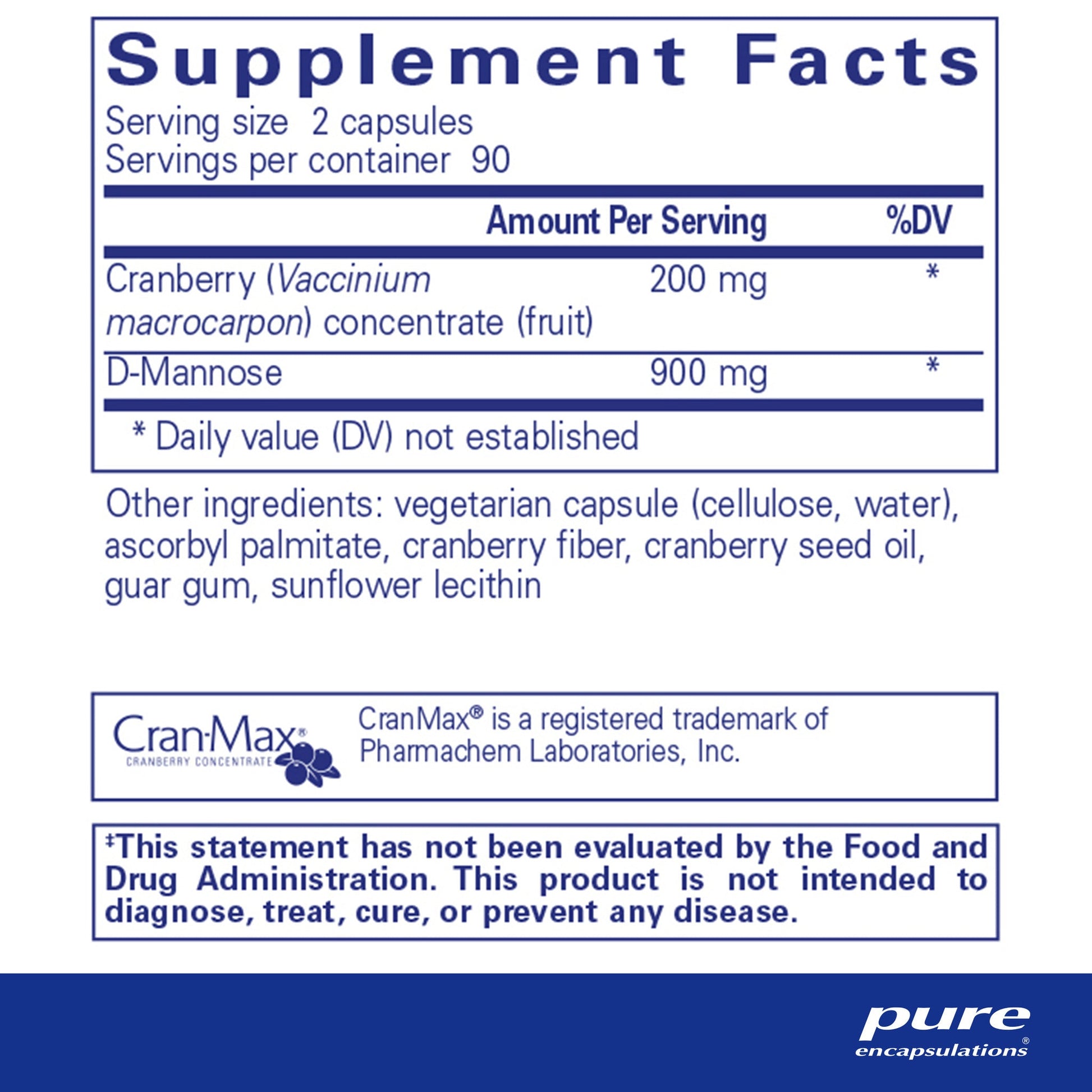 Combines cranberry concentrate made from 100% cranberry fruit solids and d-mannose for time-tested, concentrated support of urinary tract health‡