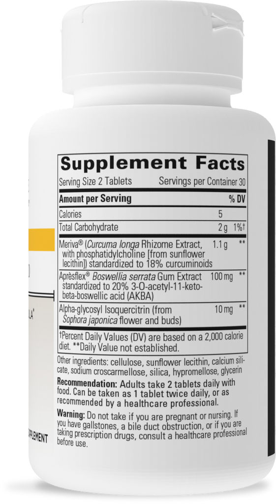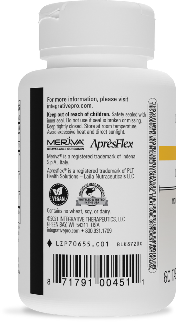 Curcumax Pro is for the relief of occasional pain and stiffness associated with overuse.* This formula combines effective levels of Meriva® curcumin with ApresFlex® boswellia and alpha-glycosyl isoquercitrin, a highly bioavailable quercetin.