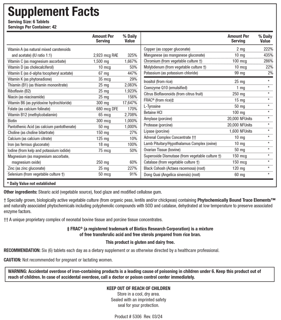 Equi-Fem™ supplies a comprehensive source of nutrients to support healthy female endocrine function. It includes vitamins, minerals, botanicals, and organ/glandular specific support, with known nutrient synergists. It may be recommended as a general female multi, as well as for those having menopausal and peri- menopausal symptoms, such as hot flashes.*