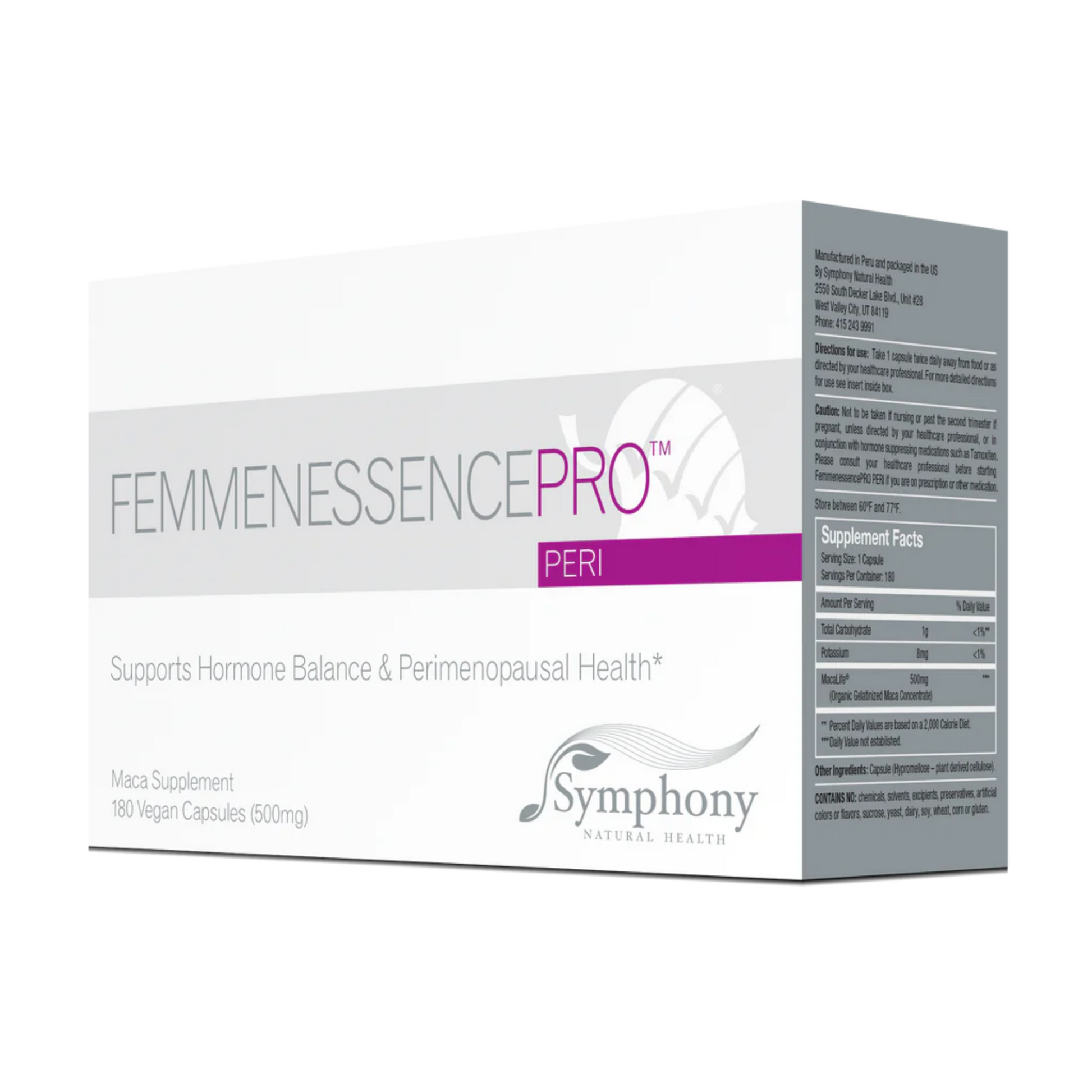 Product includes Maca-GO® – the only herbal ingredient to demonstrate statistically significant effects on hormones in peri- and postmenopausal women – and one specific maca phenotype for perimenopausal symptoms. Instead of introducing hormones into the body, FemmenessencePRO PERI nourishes the hypothalamic-pituitary-adrenal axis, supporting the body’s own hormone production. With market-leading results, 72-84% of women experienced a highly statistically significant reduction in perimenopausal symptoms in clinical trials. More importantly, because of the impact on hormones, FemmenessencePRO PERI positively impacted heart and mental health.*