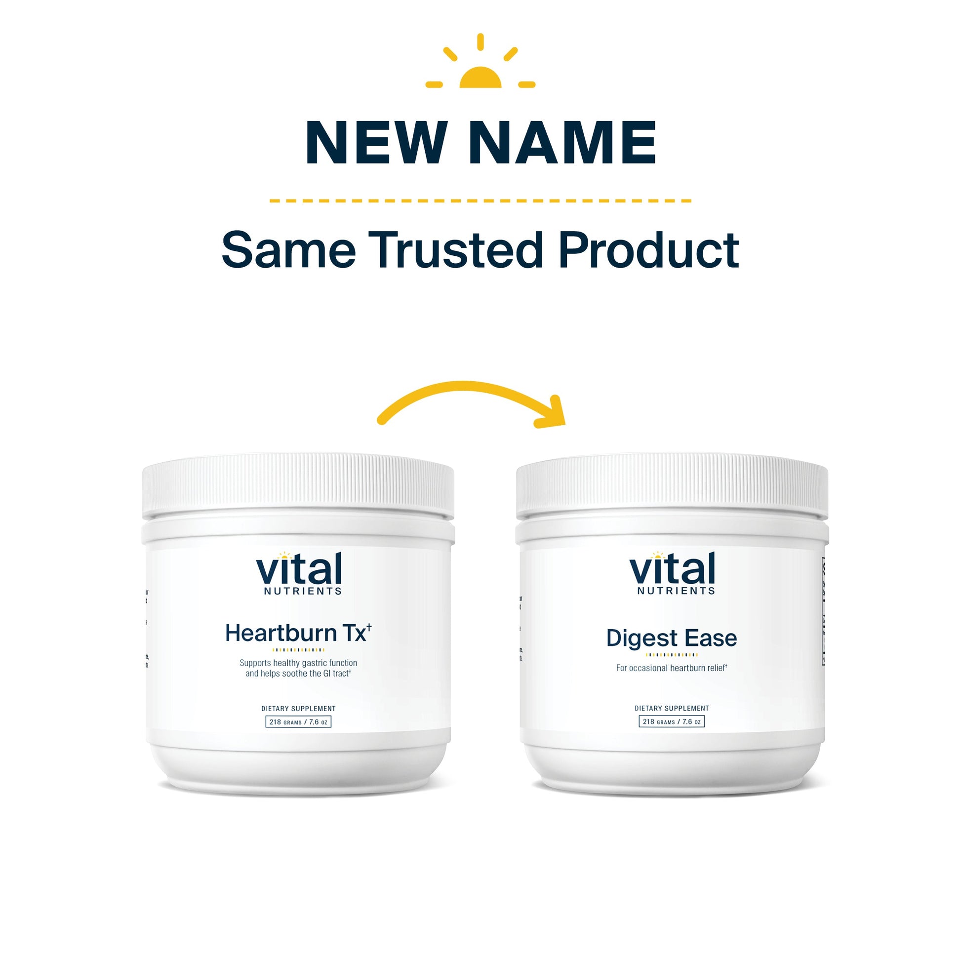 Digest Ease (formerly Heartburn Tx) powder contains a proprietary blend of herbs and nutrients designed to soothe occasional heartburn.*