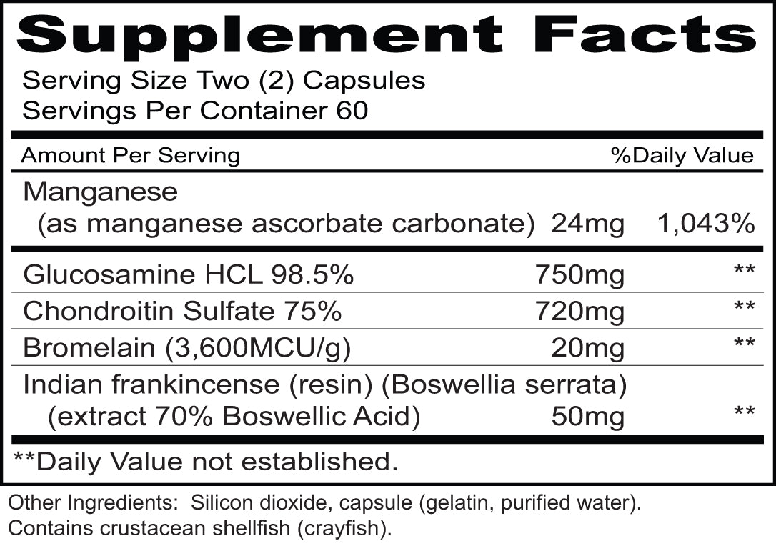 A glucosamine and chondroitin sulfate combination formulated to encourage elasticity and movement in healthy joints and healthy connective tissue. Joint Flex pills enhance the normal synthesis of glycoproteins. Chondroitin sulfate is part of a large protein molecule (proteoglycan) that gives cartilage elasticity.*