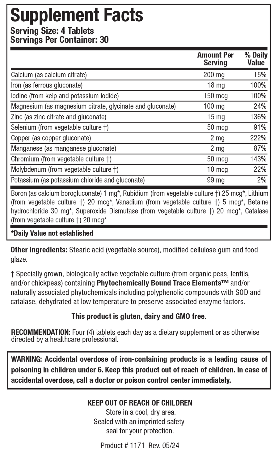 Multi-Mins™ provides a balanced source of mineral chelates and whole food, phytochemically bound trace minerals, combined with the antioxidant enzymes SOD and catalase.