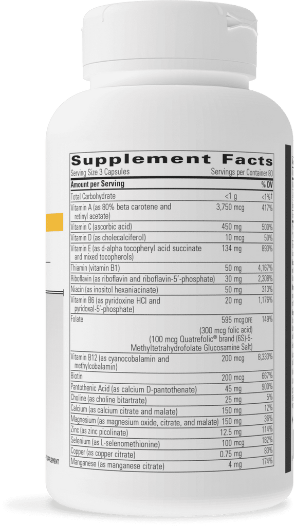 A comprehensive multivitamin-mineral supplement. Formulated for maximum bioavailability with activated coenzyme forms of vitamins B2 and B6, flush-free inositol hexaniacinate, and mineral citrates and malates.