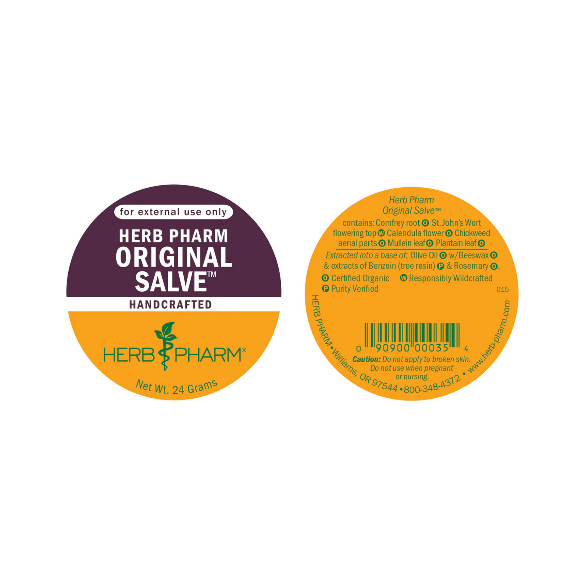 Contains: Comfrey root (Symphytum officinale), St. John's Wort flowering top (Hypericum perforatum), Calendula flower (Calendula officinalis), Chickweed aerial parts (Stellaria media), Mullein leaf (Verbascum thapsus), Plantain leaf (Plantago major &/or lanceolata), certified organic olive oil w/ certified organic beeswax & extracts of purity verified Benzoin (tree resin) & certified organic Rosemary.