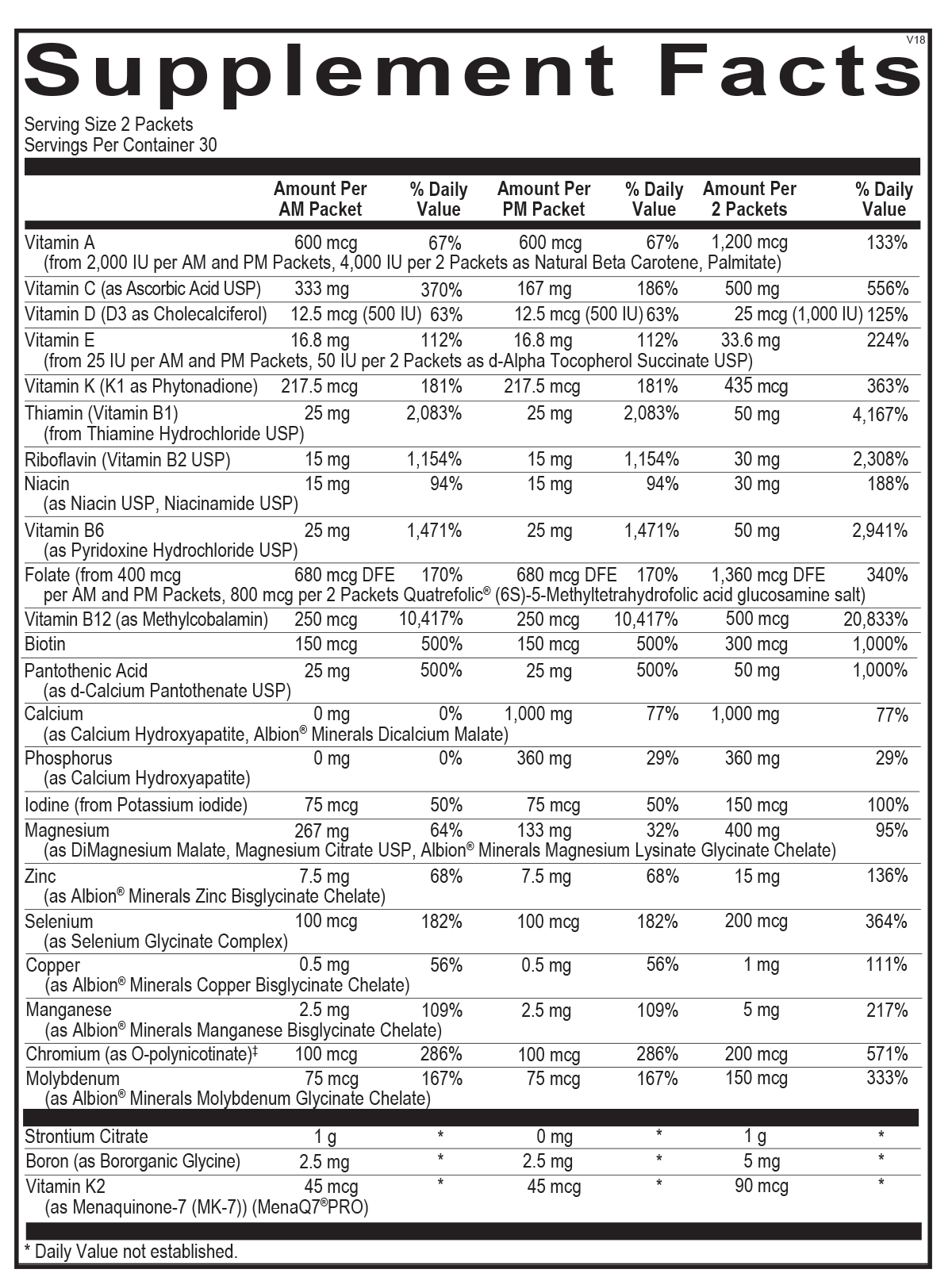 Pro Bono® provides the nutritional support needed to maintain healthy bone formation. The single-serving AM and PM packets make Pro Bono® convenient, while separating the calcium and strontium servings for better absorption.