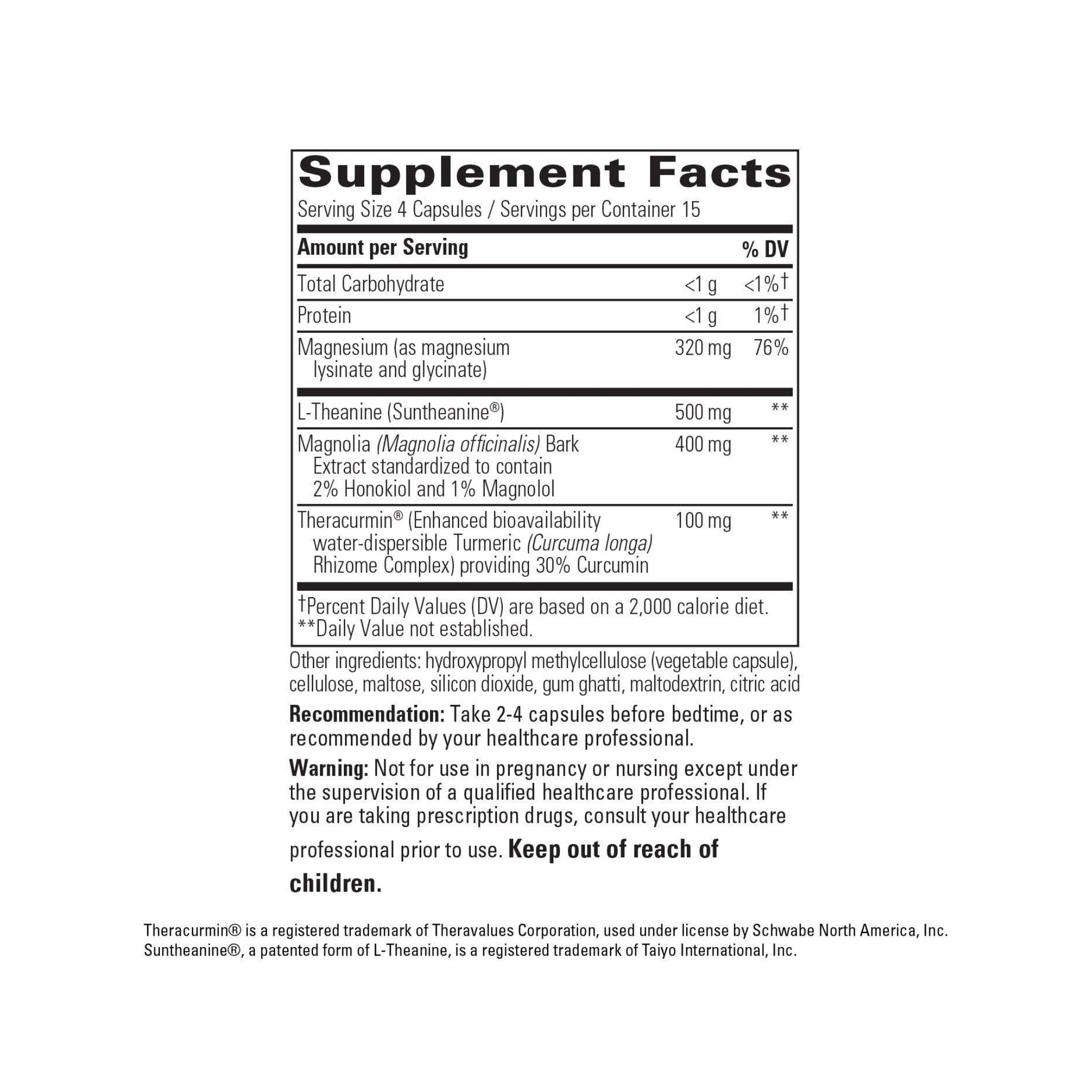 Pro Som combines the relaxing benefits of L-theanine with magnesium, magnolia bark and Theracurmin®, designed to improve sleep quality and reduce waking after sleep onset. This formula supports restful sleep and relaxation without melatonin, reducing the known concerns regarding melatonin intolerance in certain people and melatonin-related morning grogginess.