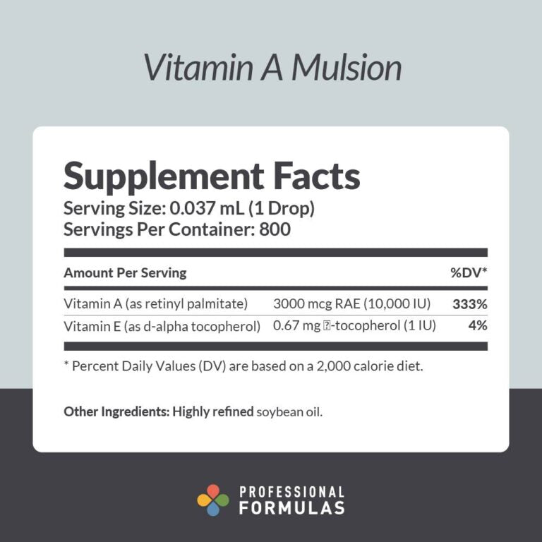 Liquid emulsified vitamin A in a convenient, concentrated liquid form.