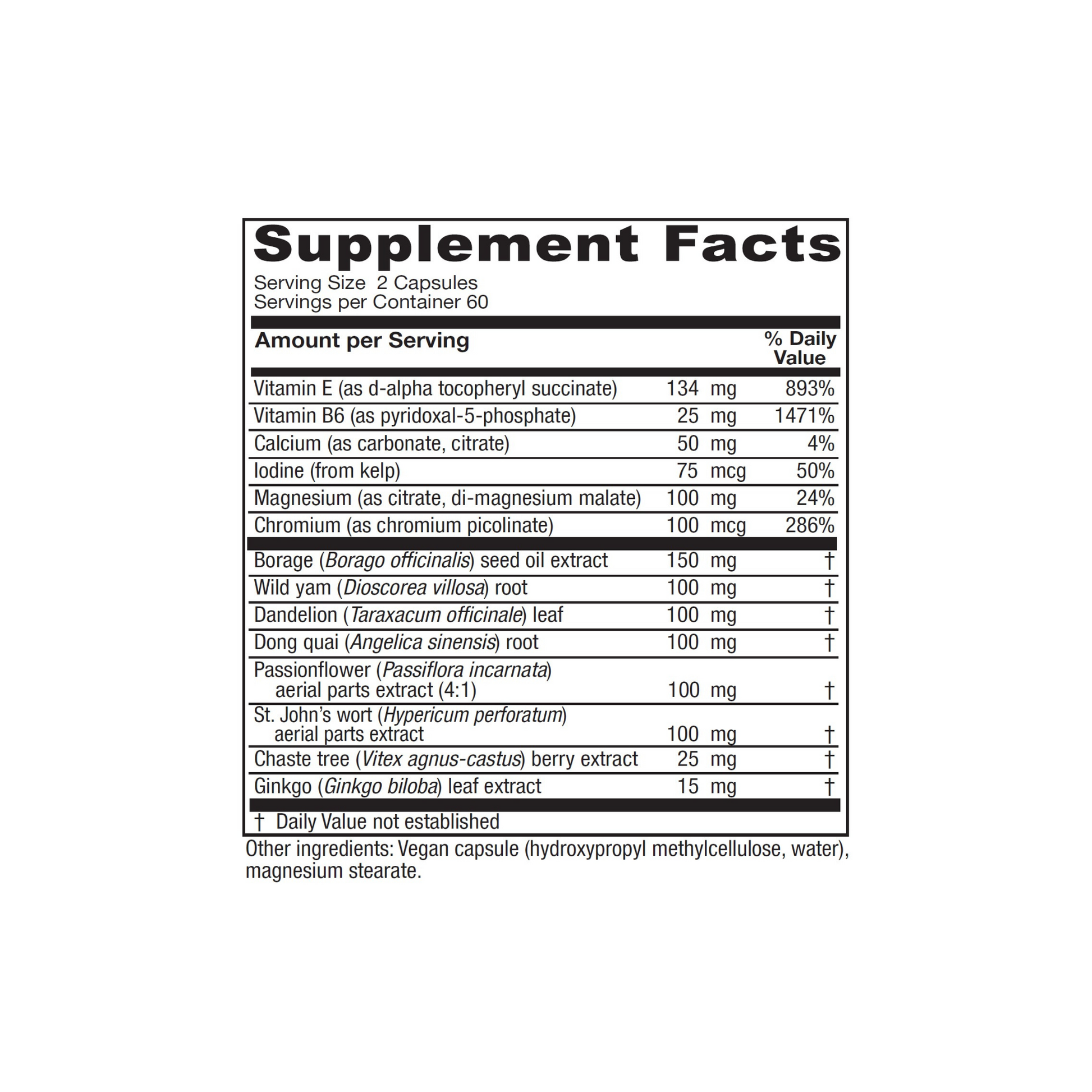 A thoughtful and effective premenstrual support formula, reflecting the well-researched nutrients and herbs studied and observed empirically to promote relief from common PMS as well as overall healthy menstrual cycles.*